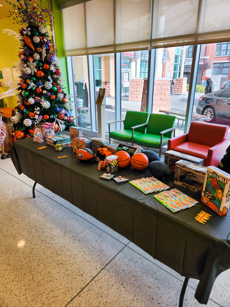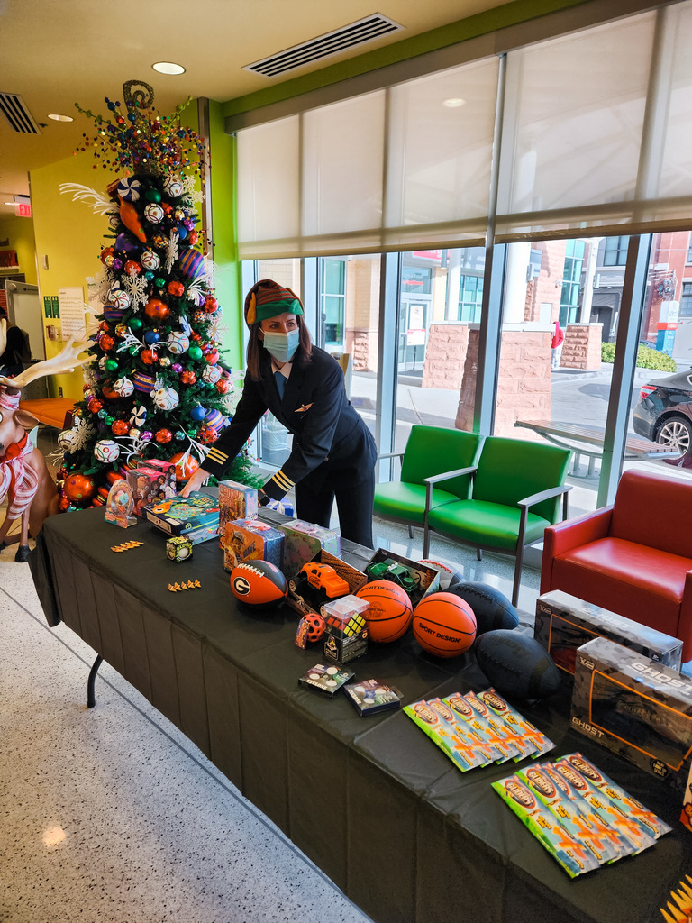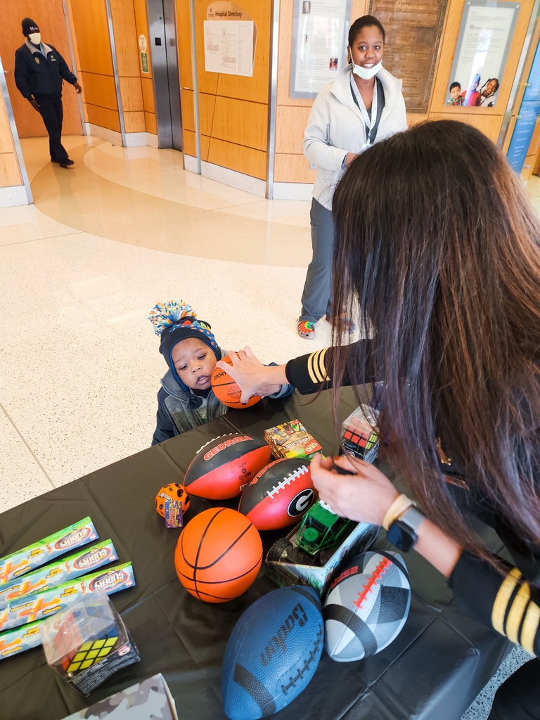 Description: A small group of volunteers spread cheer at Hughes Spalding Children’s Hospital