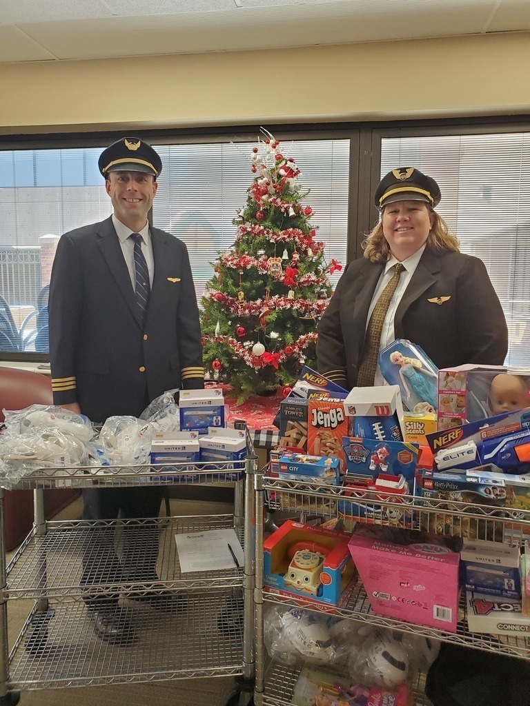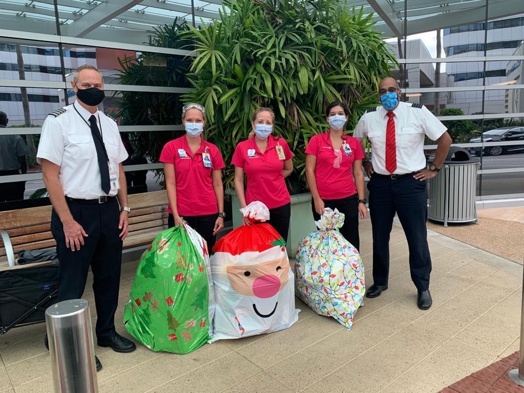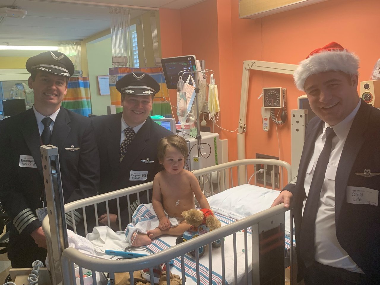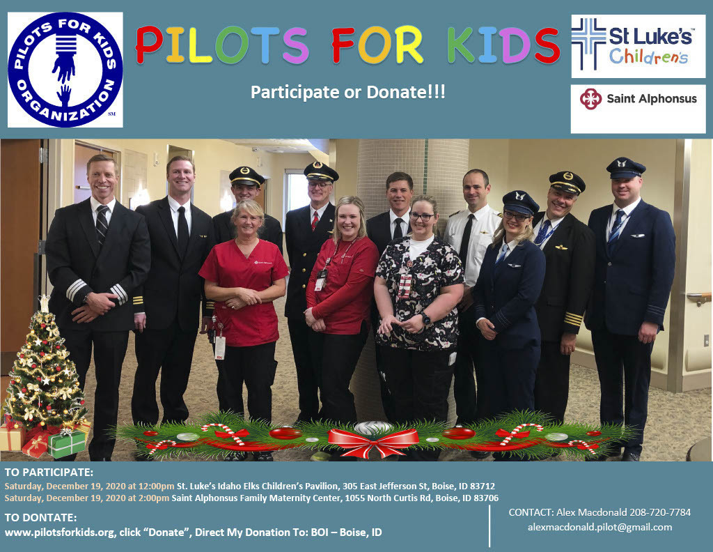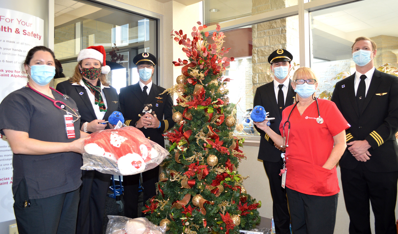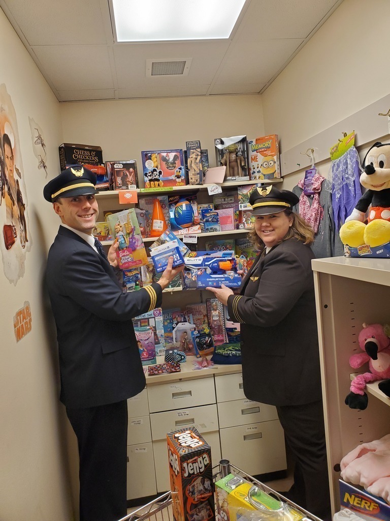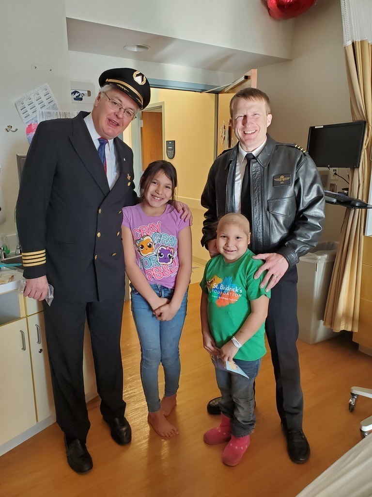 Description: Pilots from Sioux Falls Pilots for Kids visited Sanford and Avera McKennan Children's hospitals to hand out toys and share some Christmas cheer with kids and their families. Paul Dokken (Delta) Aaron Svec (Skywest), Lisa Strohchein (UPS) and Casey Delaney (United) made the visit for the 2019 event.