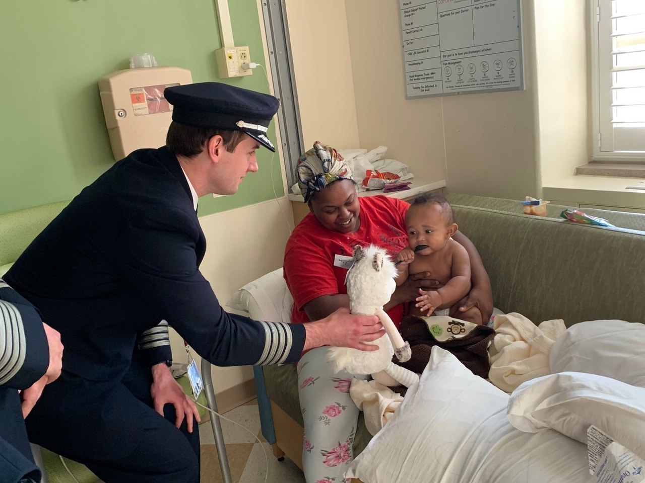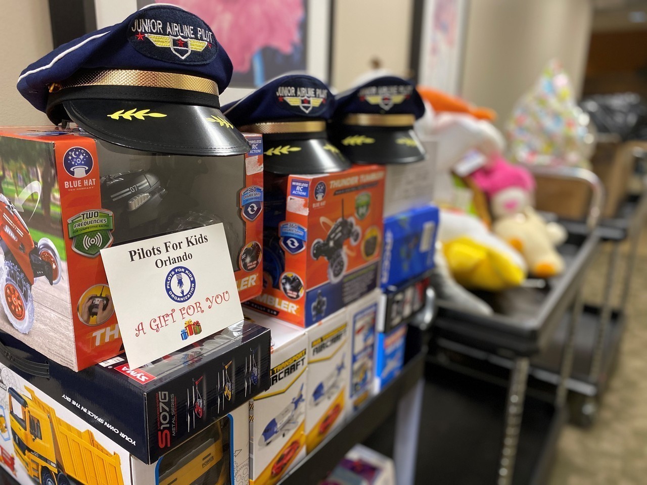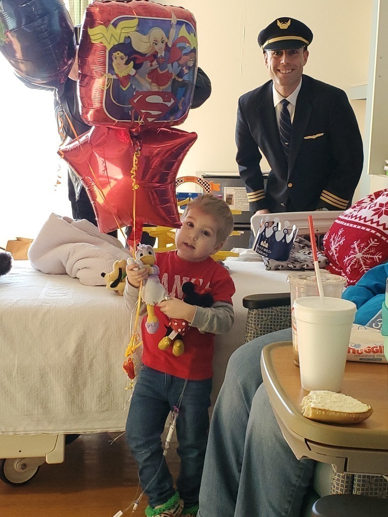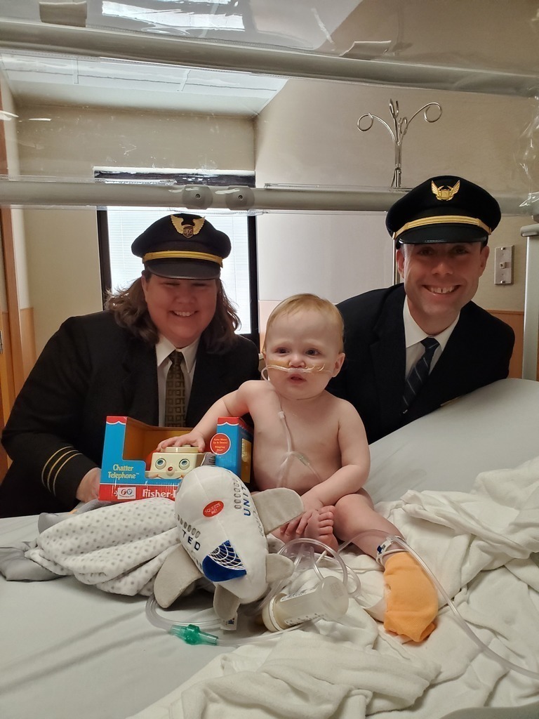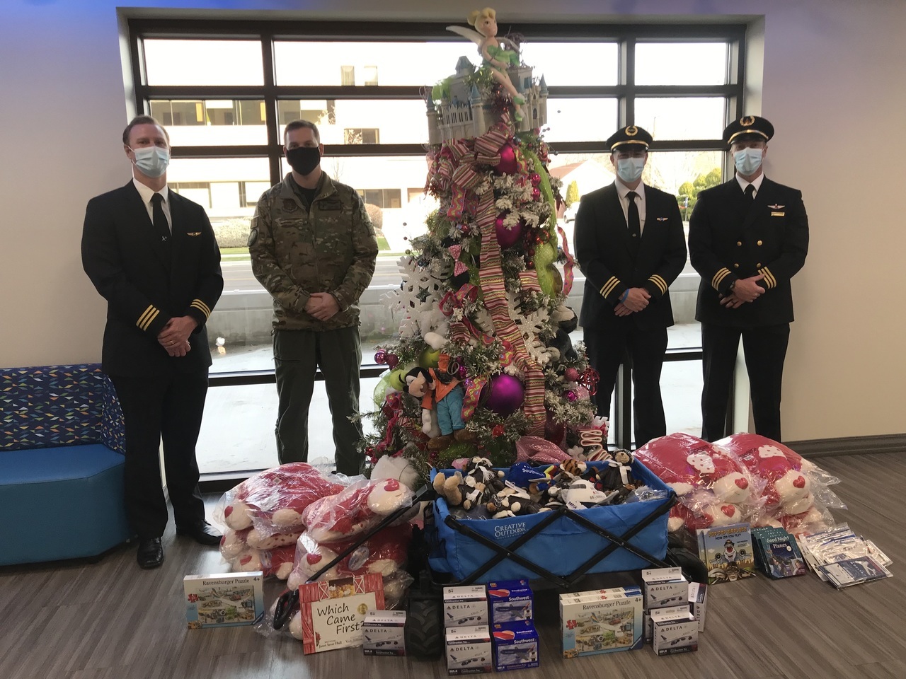 Description: Pilots from Sioux Falls Pilots for Kids visited Sanford and Avera McKennan Children's hospitals to hand out toys and share some Christmas cheer with kids and their families. Paul Dokken (Delta) Aaron Svec (Skywest), Lisa Strohchein (UPS) and Casey Delaney (United) made the visit for the 2019 event.