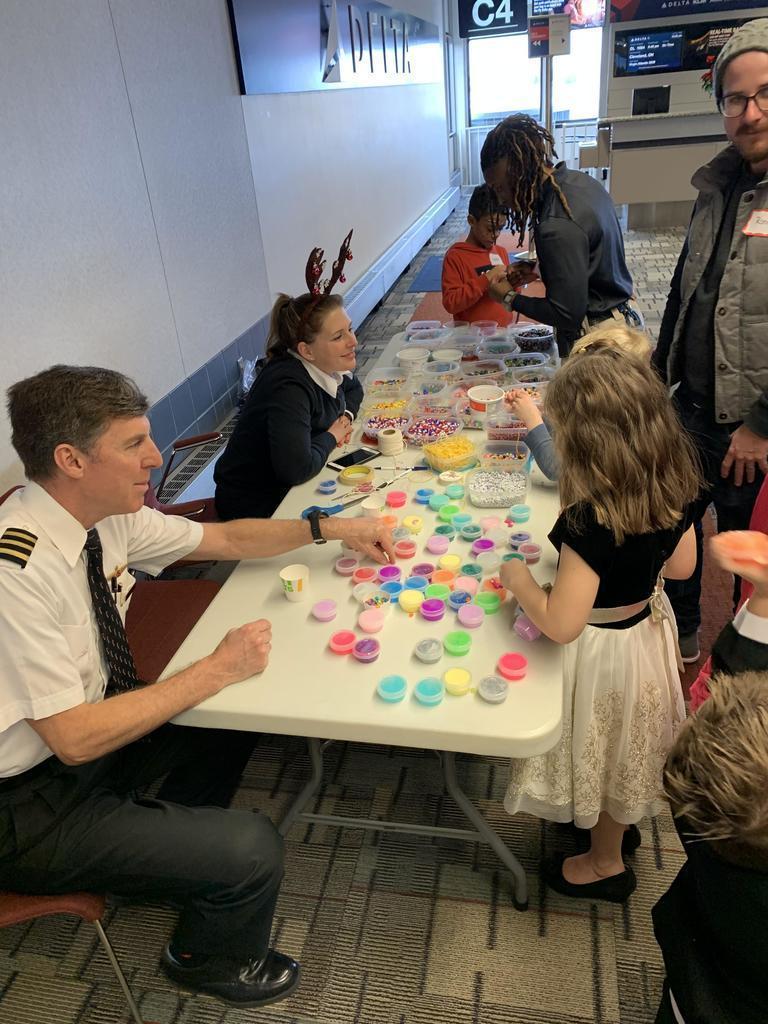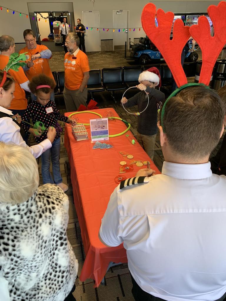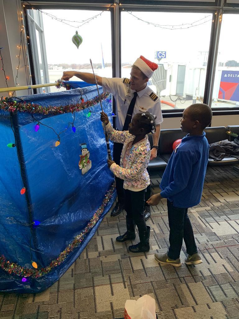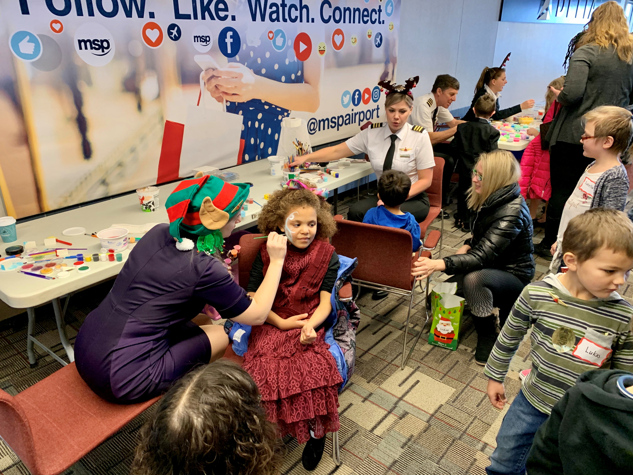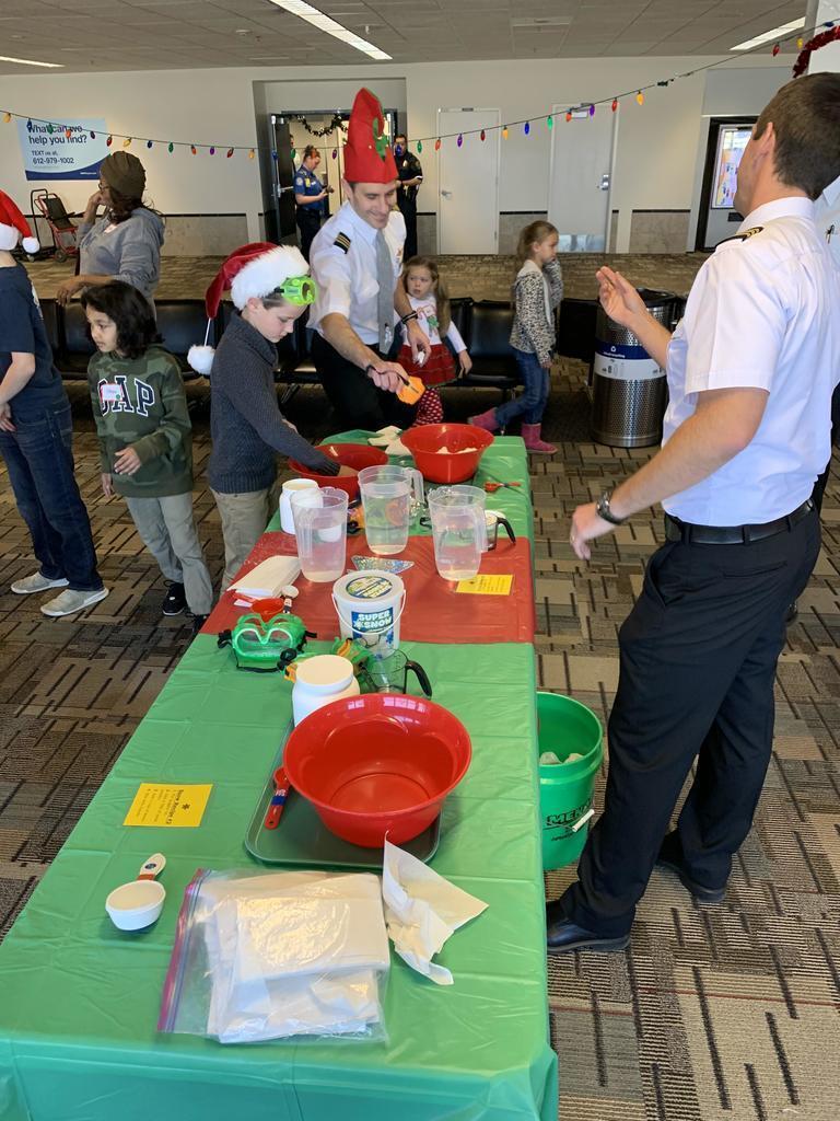 Description: On Saturday, 07 December 2019 several volunteers including Delta pilots, flight attendants others helped to make a difference in the lives of foster kids and families from the Minnesota Children’s Home Society and Lutheran Social Services at the 30th Annual Pilots For Kids Fantasy Flight to the North Pole held at MSP airport. Over 200 foster kids and families came to MSP and experienced some great food, games and entertainment including appearances by local sports mascots such as Goldy Gopher (MN Gophers), Viktor the Viking (MN Vikings) and T.C. Bear (MN Twins). In addition, there were other fun activities including face painting, beading, a candy fishing booth and hands-on science activities presented by the Science Museum of Minnesota as well as a cryogenics demonstration by the 3M Visiting Wizards. The highlight of the day however was when guests boarded a Delta aircraft for a “flight” to the North Pole that took them on a trip around the airport before arriving back at the gate about 45 minutes later where they then found an area that has been magically transformed into the North Pole and where Santa himself was waiting to greet them. Overall it was a wonderful day that helped not only the guests but also volunteers embrace and get in to the holiday spirit early.