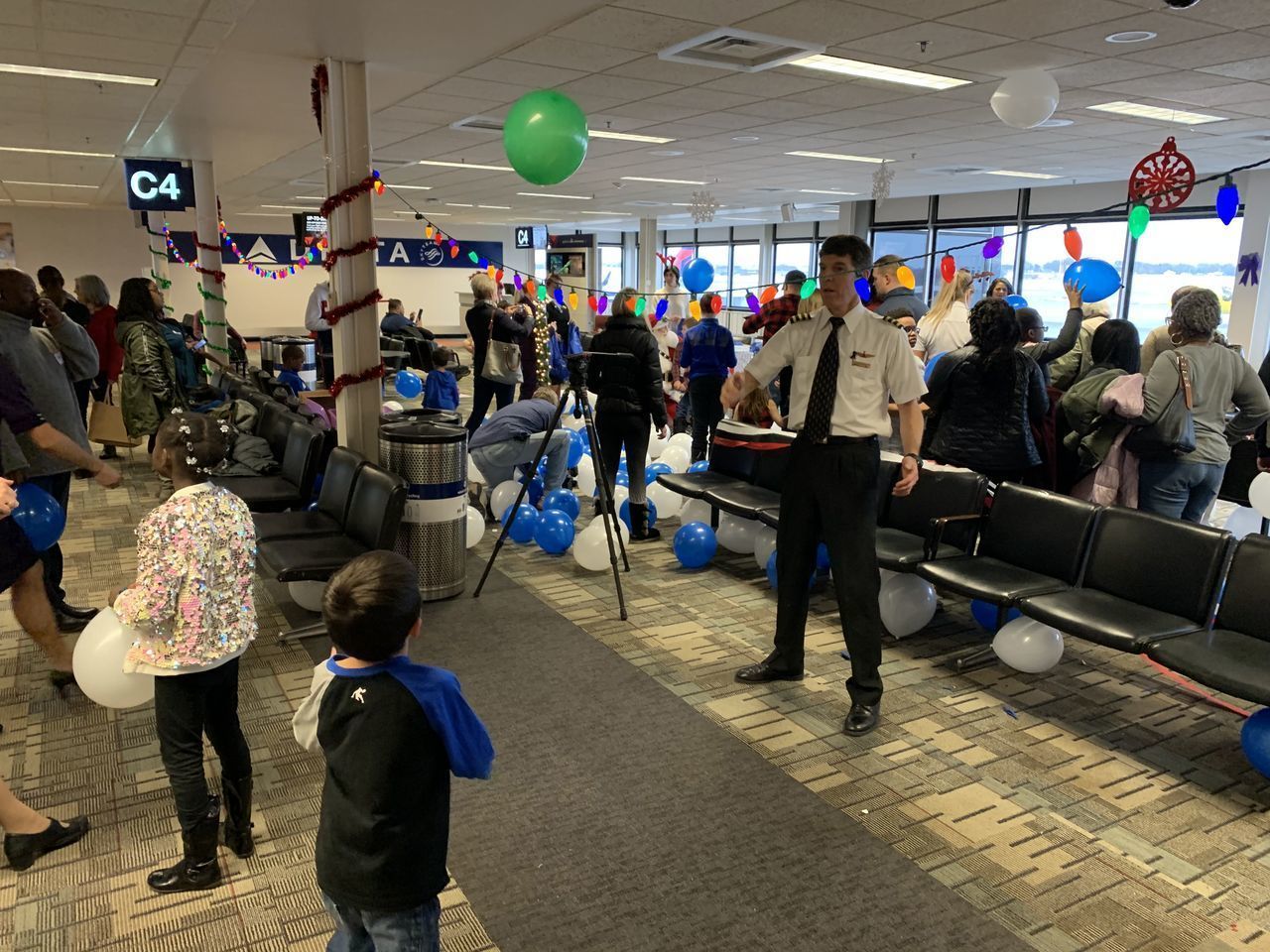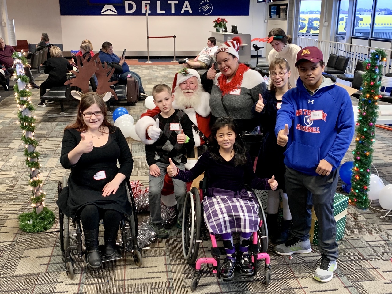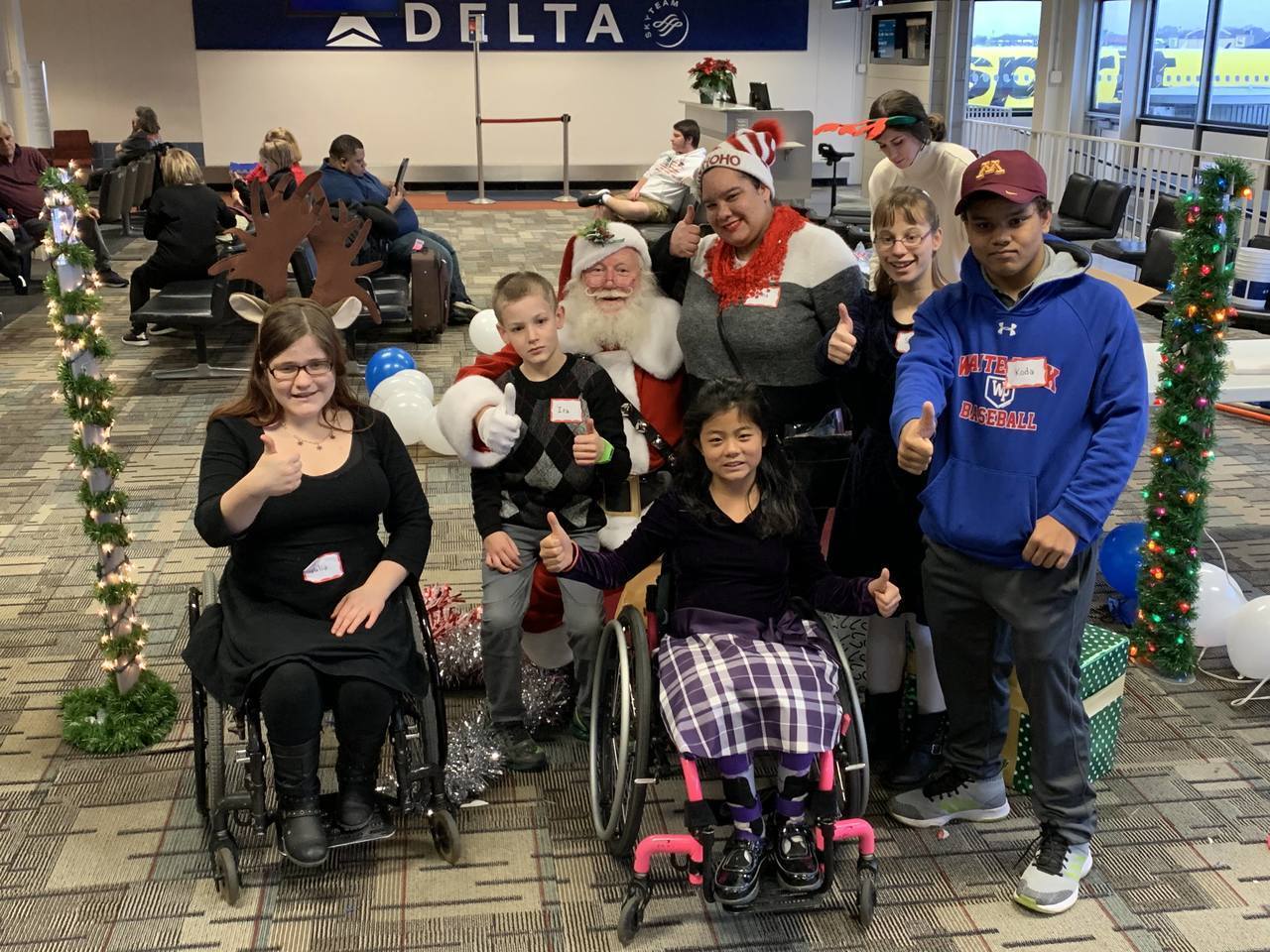 Description: On Saturday, 07 December 2019 several volunteers including Delta pilots, flight attendants others helped to make a difference in the lives of foster kids and families from the Minnesota Children’s Home Society and Lutheran Social Services at the 30th Annual Pilots For Kids Fantasy Flight to the North Pole held at MSP airport. Over 200 foster kids and families came to MSP and experienced some great food, games and entertainment including appearances by local sports mascots such as Goldy Gopher (MN Gophers), Viktor the Viking (MN Vikings) and T.C. Bear (MN Twins). In addition, there were other fun activities including face painting, beading, a candy fishing booth and hands-on science activities presented by the Science Museum of Minnesota as well as a cryogenics demonstration by the 3M Visiting Wizards. The highlight of the day however was when guests boarded a Delta aircraft for a “flight” to the North Pole that took them on a trip around the airport before arriving back at the gate about 45 minutes later where they then found an area that has been magically transformed into the North Pole and where Santa himself was waiting to greet them. Overall it was a wonderful day that helped not only the guests but also volunteers embrace and get in to the holiday spirit early.