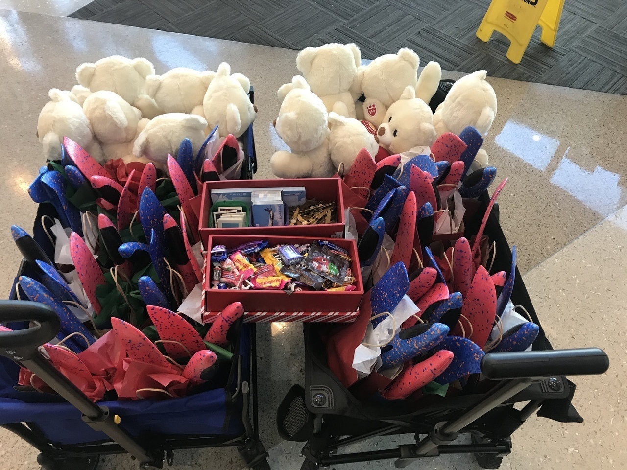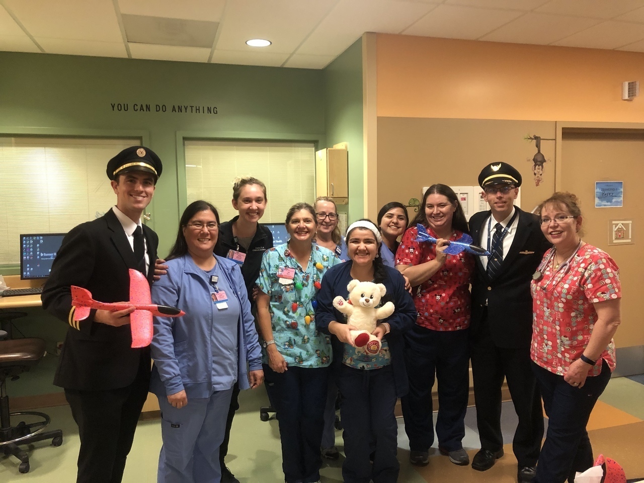 Description: On December 10th, 2019 the Tucson group visited Banner Diamond Children's Hospital. We handed out airplanes, wings, teddy bears, slime and other gifts. We visited roughly 35 kids!