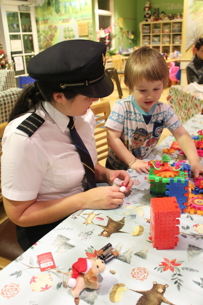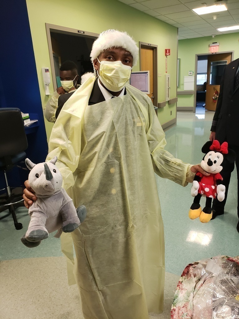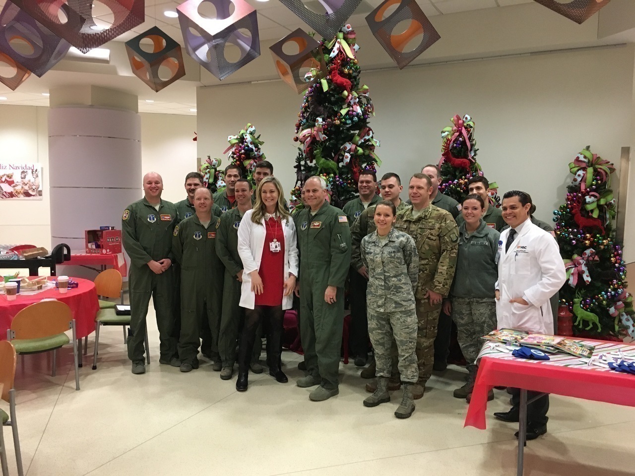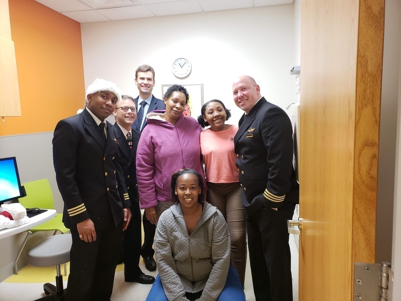 Description: On December 20th, 7 Pilots from Delta, United, Trans States and Jet Blue visited Hughes Spalding to spread holiday cheer.
