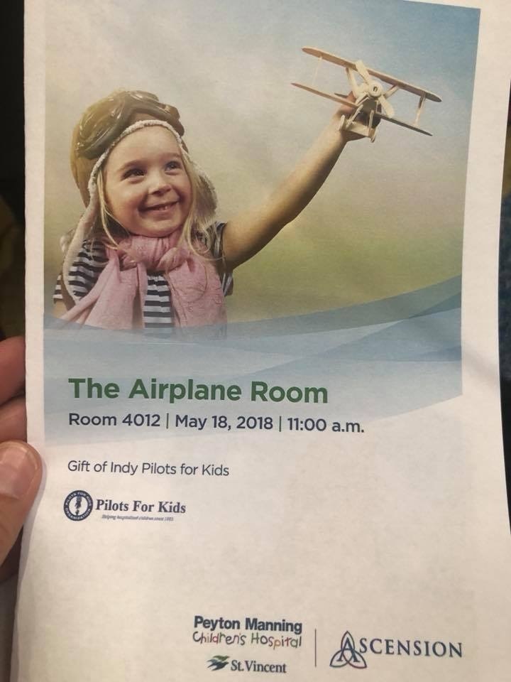 Description: Pictures from our May 18th, 2018 Dedication and Grand Opening of our PFK Airplane Room at Peyton Manning Children's Hospital in Indianapolis