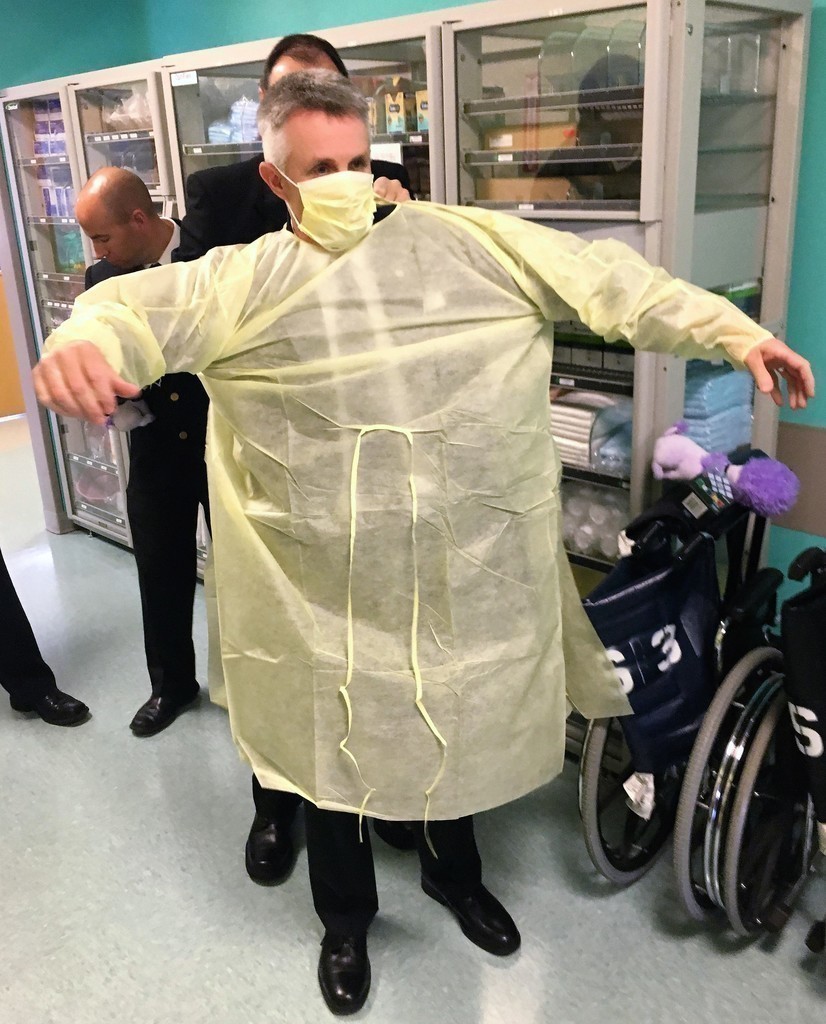 Description: Approaching our base of operations for the day. **//** Ready to hit the halls! **//** With Joe Basilone and Jake Anderson: Perhaps Makaylah (patient) would prefer the Clifford dog in Joe’s hand? **//** Aaron Boone getting OJT on how to don the protective garb. **//** Fatimatu (patient) knows there are big smiles under Howard Kwon’s and Nick Kaplan’s masks. **//** Erin Moneymaker is an instant friends with Jakari. **//** Bob Brinker putting a smile on VJ (and Mom & Dad, too!) **//** Zak Aman supplying Nick Kaplan with goodies before he enters a room. **//** Just before the last swing through the waiting rooms: First row: Ben Harris, Joe Basilone, Erin Moneymaker, Dieynabou Diallo (hosp.), Emily Grevlich (hosp.), Bill Hutchinson, Dave Biloz. Second row: Chip Pinyan. Third row: Howard Kwon, Nick Kaplan, Zak Aman, Jake Anderson. Fourth row: Mike Gofman, Don Myers, Aaron Boone. **//** Post-visit chow . . . doing what we do best?? **//**