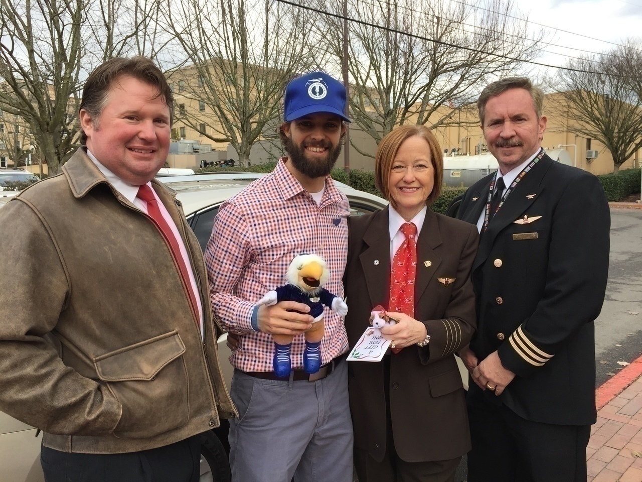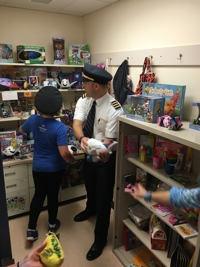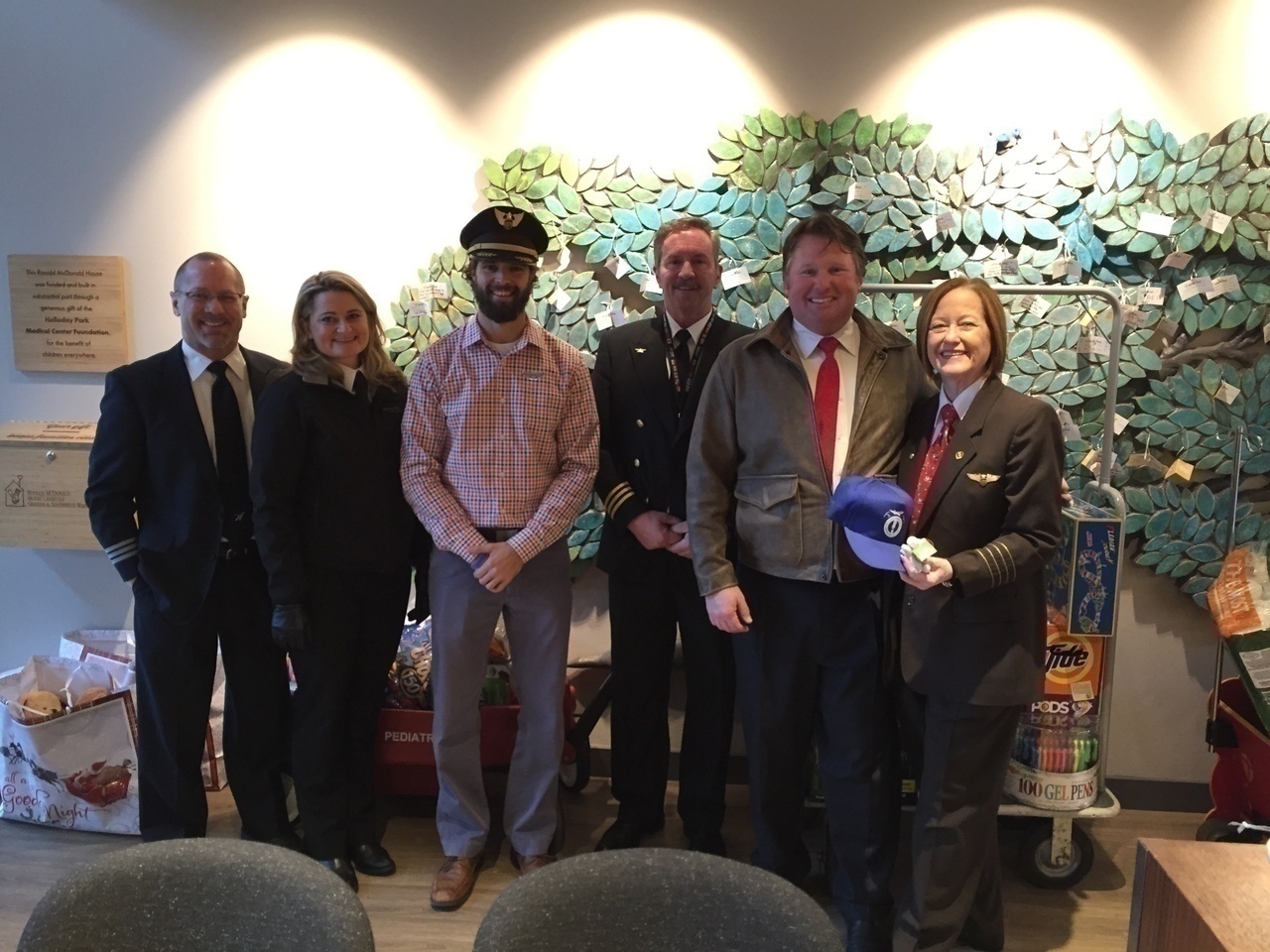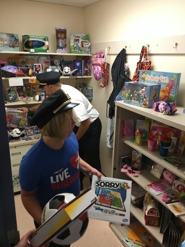 Description: Visit to Phoenix Children Hospital December 15, 2016. Twenty pilots from seven airlines joined us and visited 230 very special kids in the hospital. Pilots included Alison Glaser, Allison Ross, Lynsey Templeton, Jody Muhlitner, Andy Talbert, Nancy McMath, Jerry Johnson, Kenton Meehan, Tim Ellis, Rick Jansma, Lance Trobridge, Casey Clark, Alison Devereaux-Naumann, Jim Naumann, Mike Darnall, Scott Striclin, Michael Brucklier, and Dave Harmon. We brought a stuffed animal for each child and many items for the classrooms and playrooms for the kids to enjoy throughout the year. We are told that "the pilot visit" is one of the most anticipated of the year.
