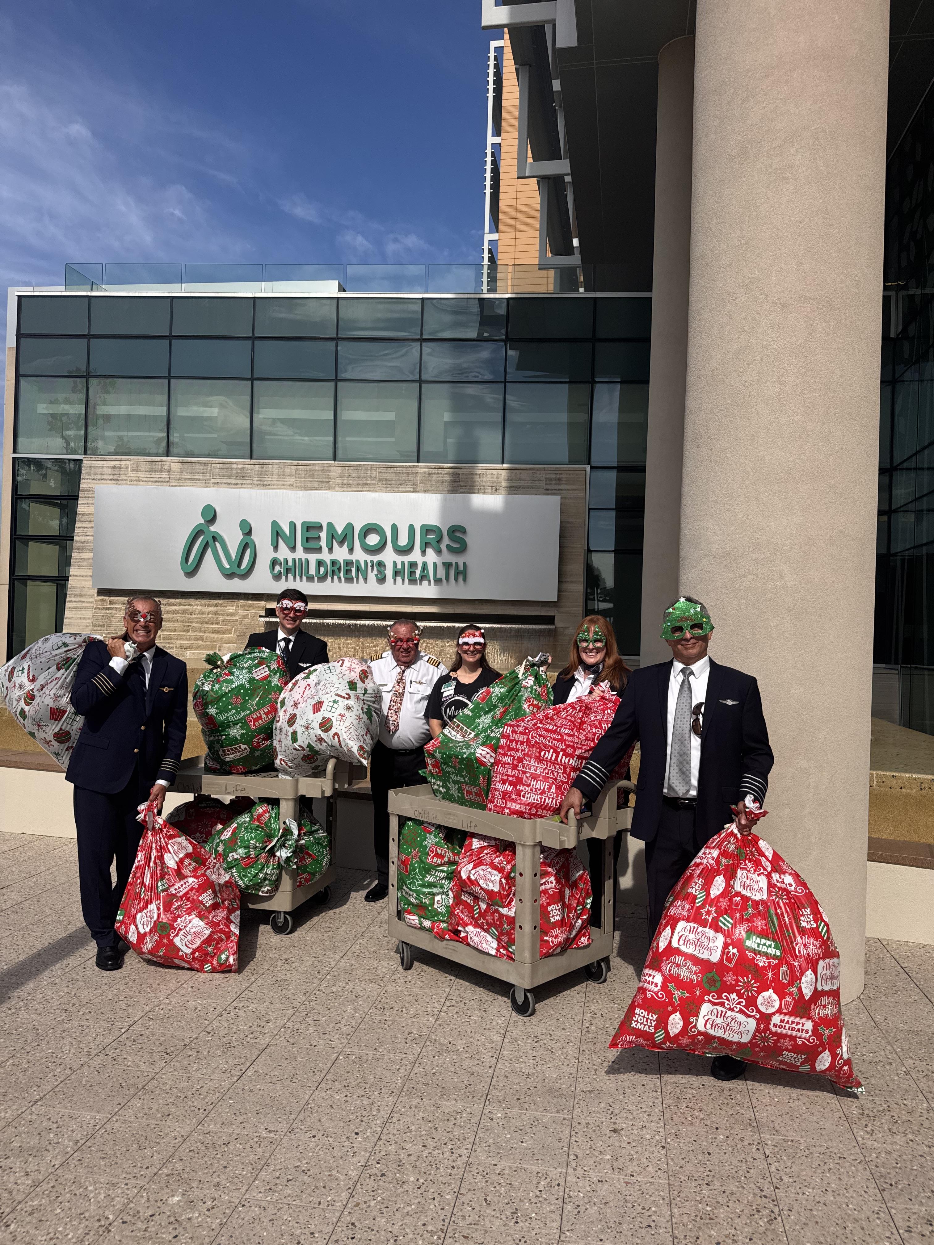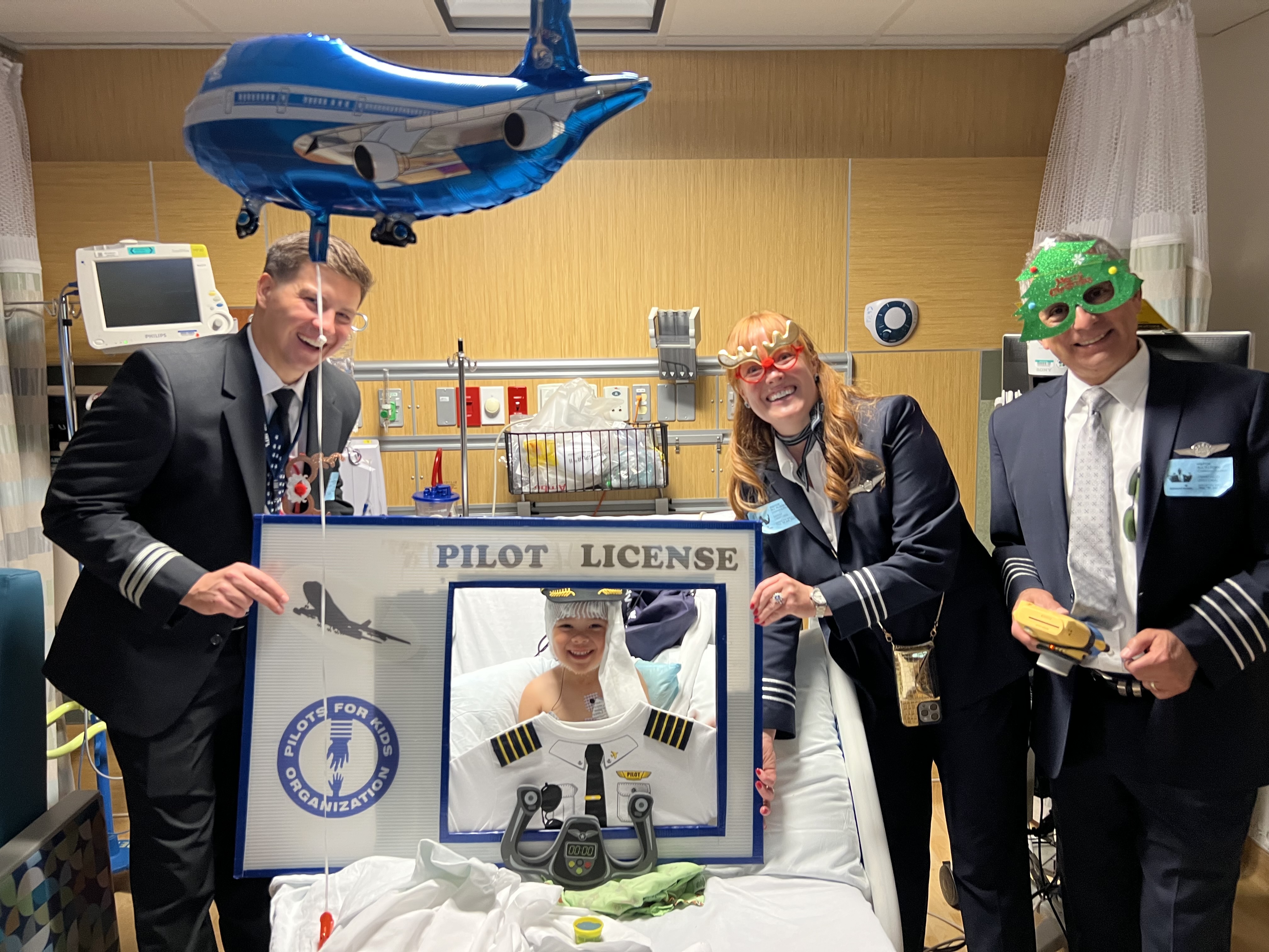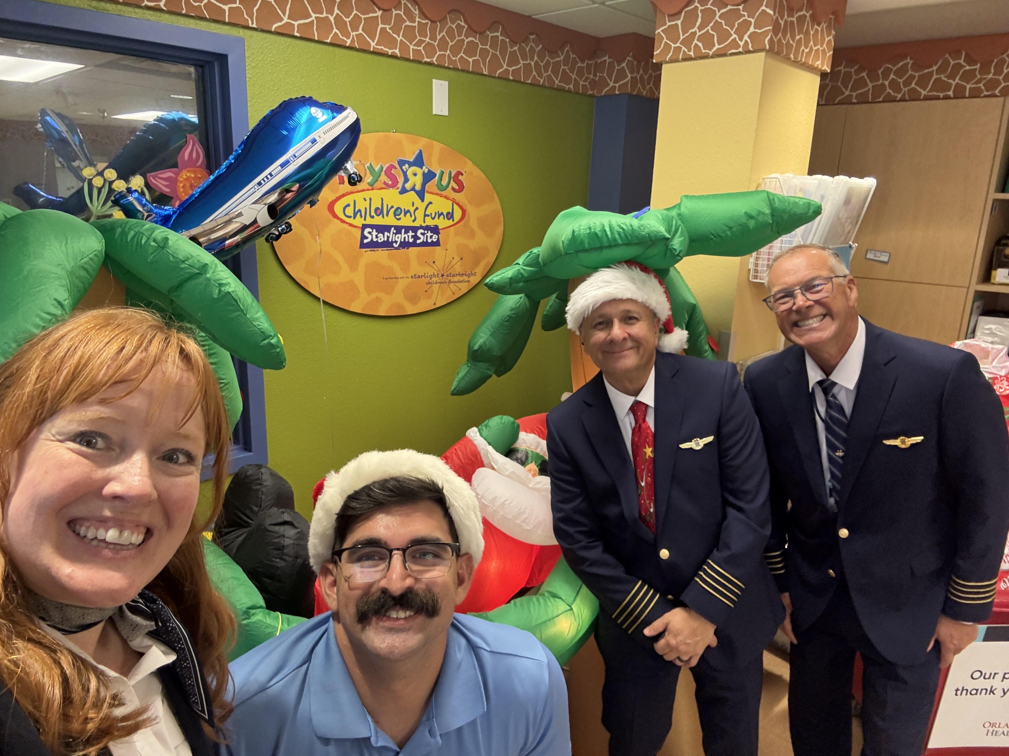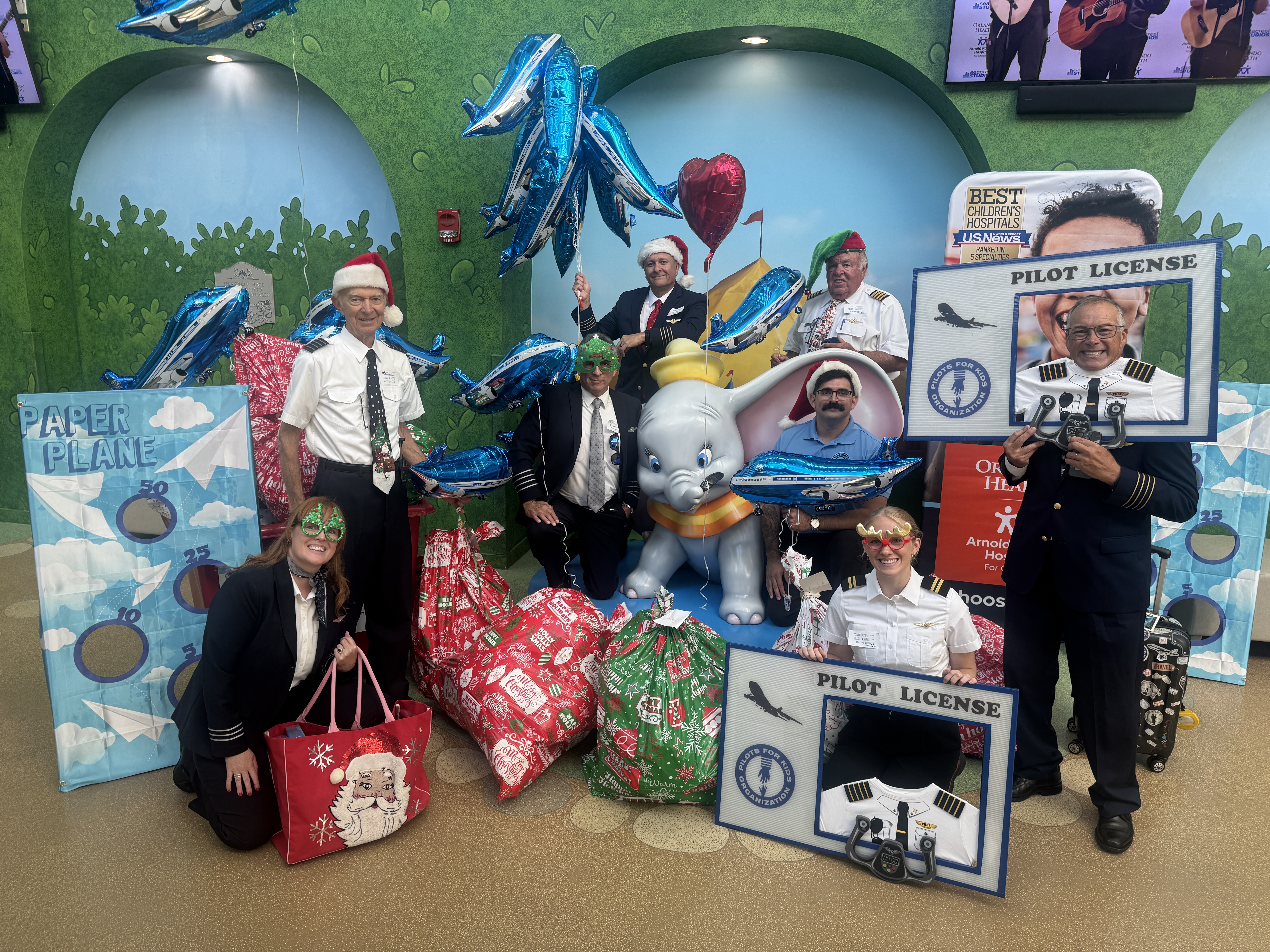 Description: The Tampa Bay Pilots for Kids brought holiday cheer to St. Joseph's Children's Hospital on December 12th, delivering gifts and engaging in festive activities with young patients in the hospital lobby.