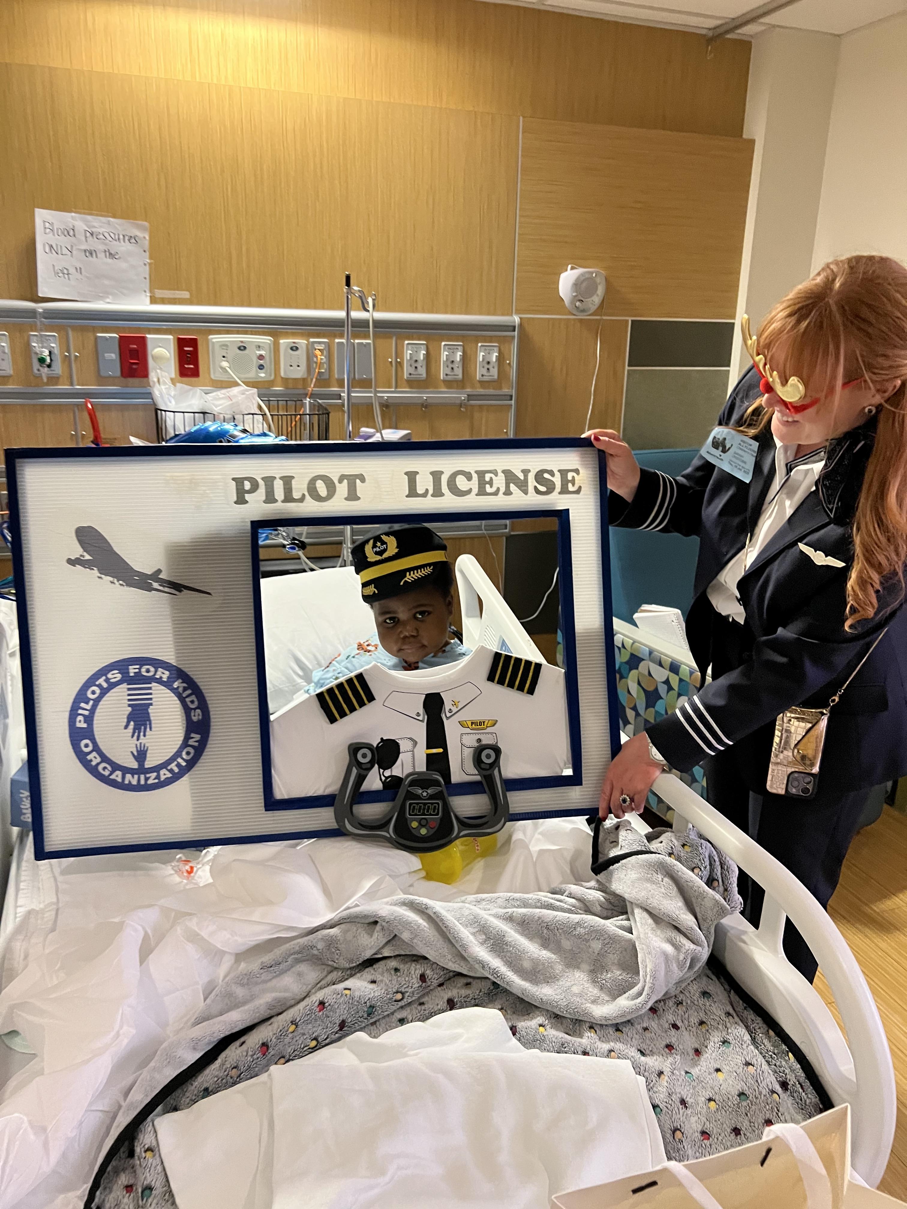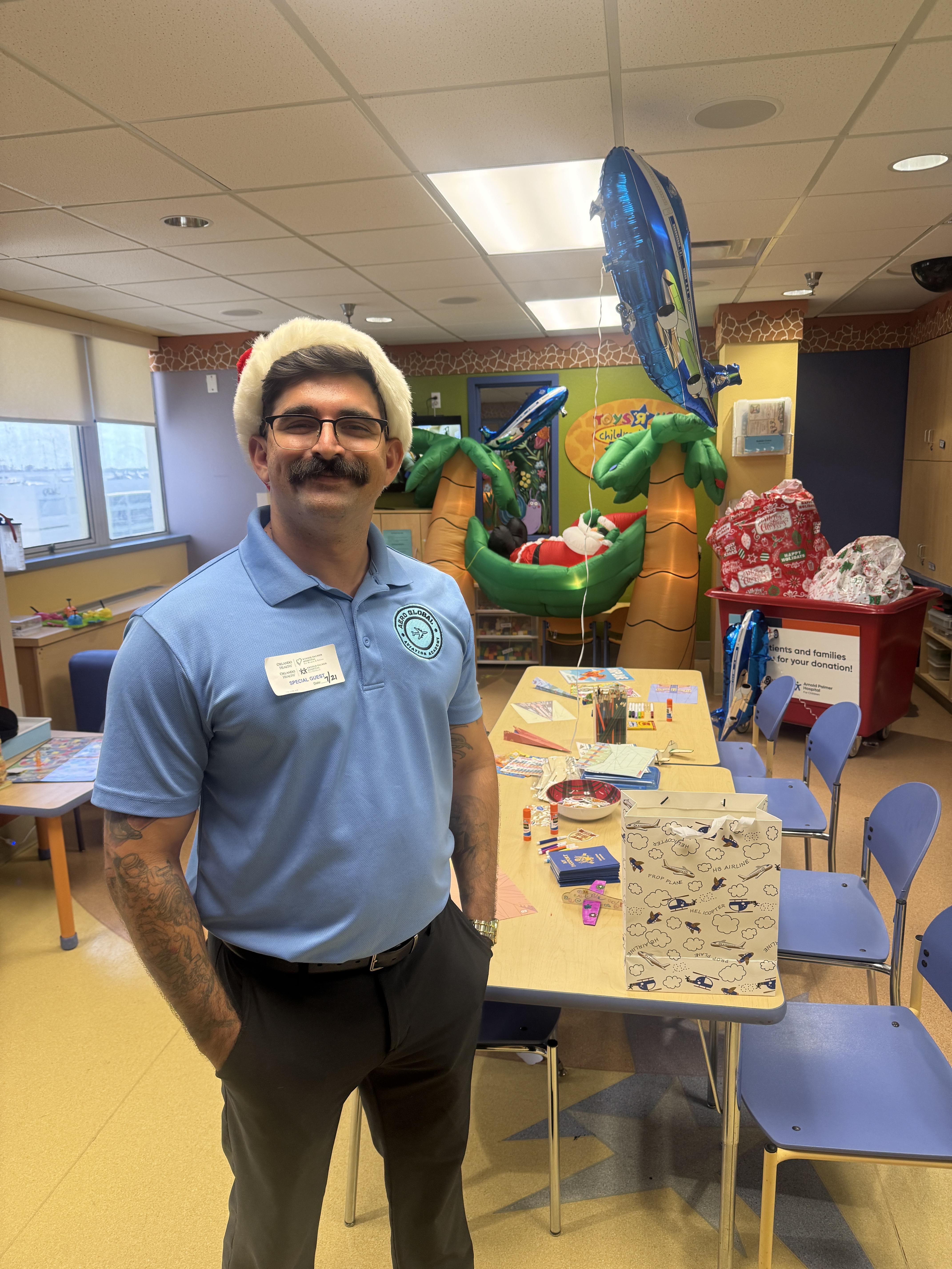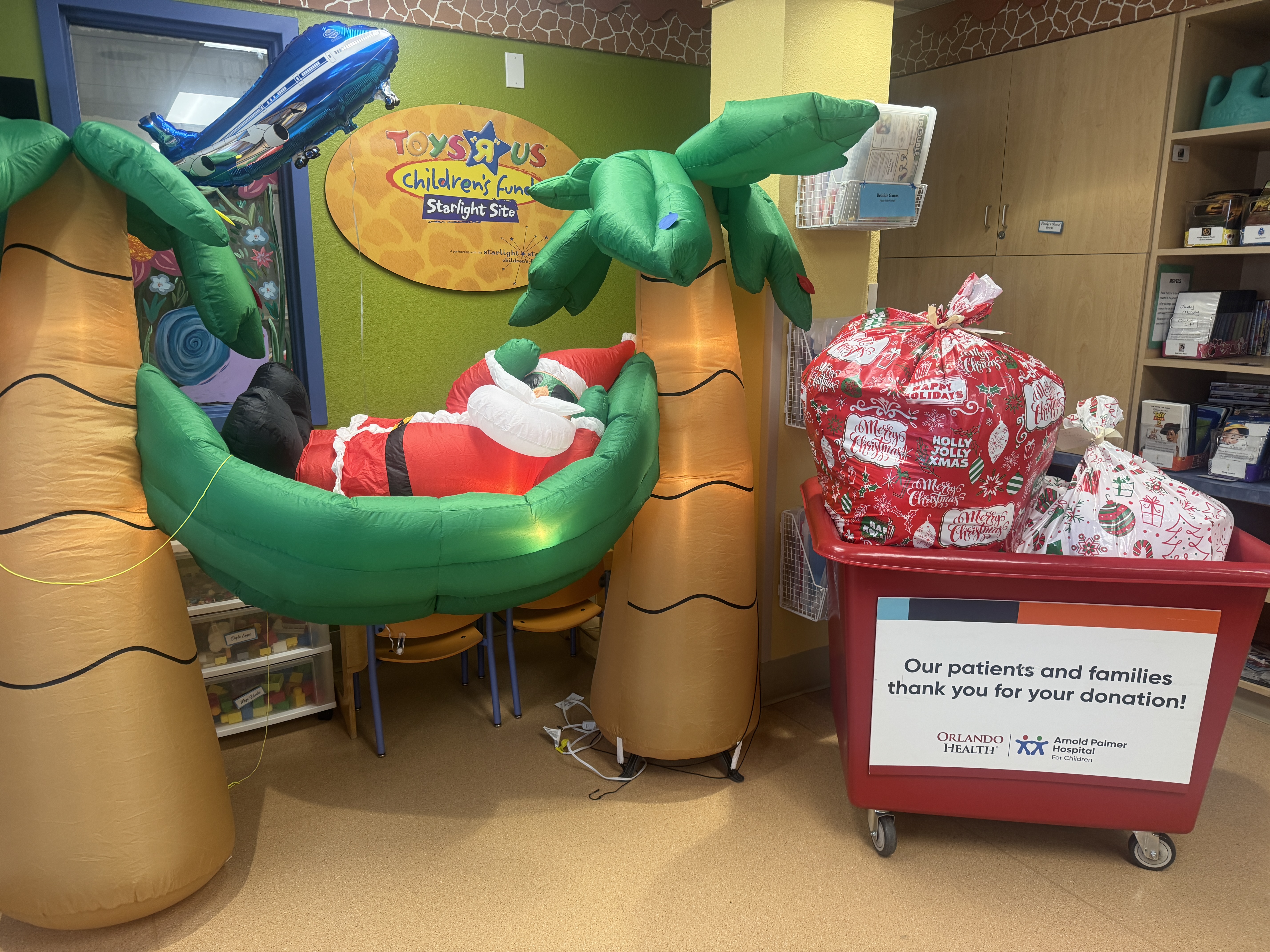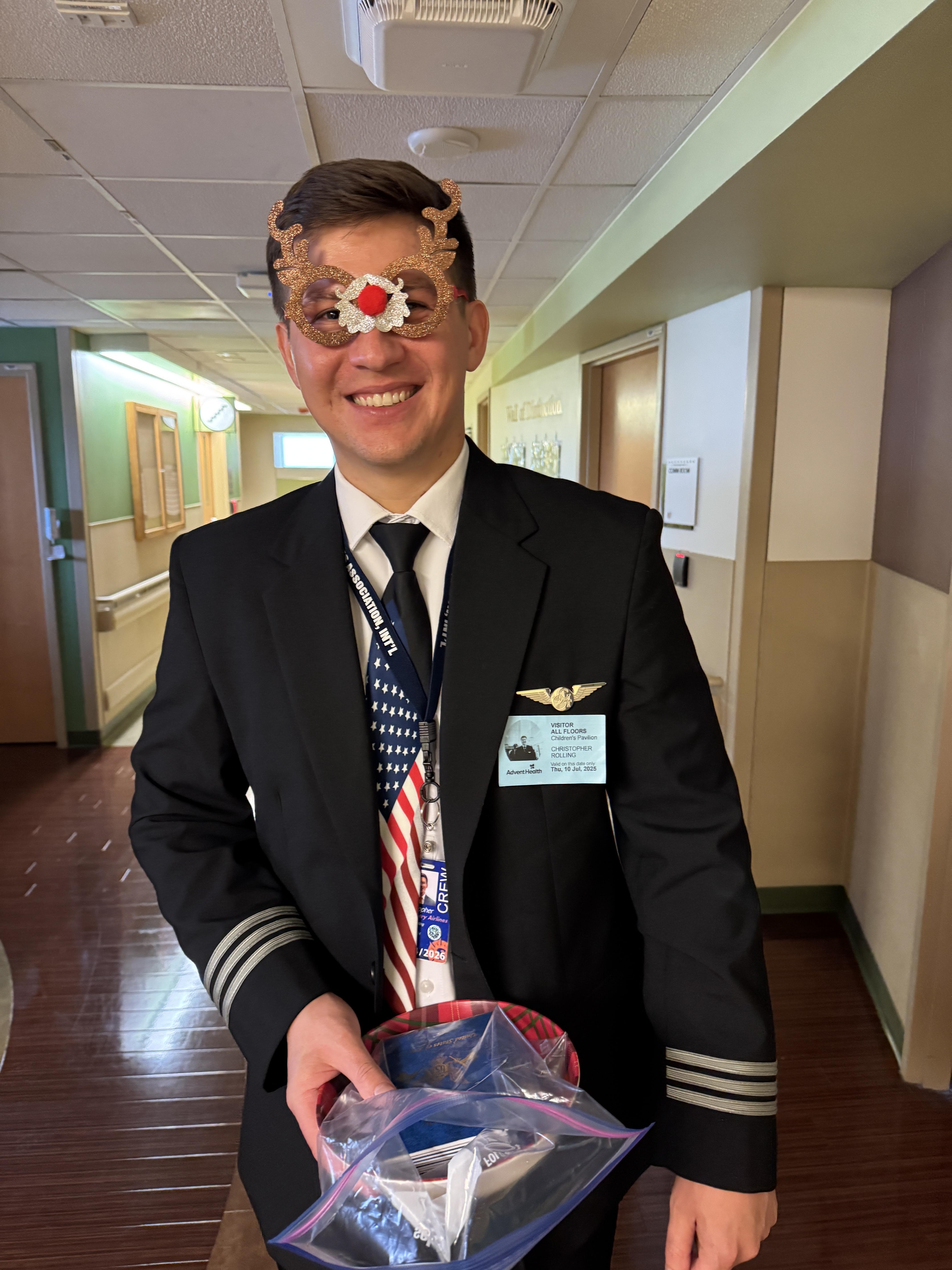 Description: The Tampa Bay Pilots for Kids brought holiday cheer to St. Joseph's Children's Hospital on December 12th, delivering gifts and engaging in festive activities with young patients in the hospital lobby.