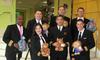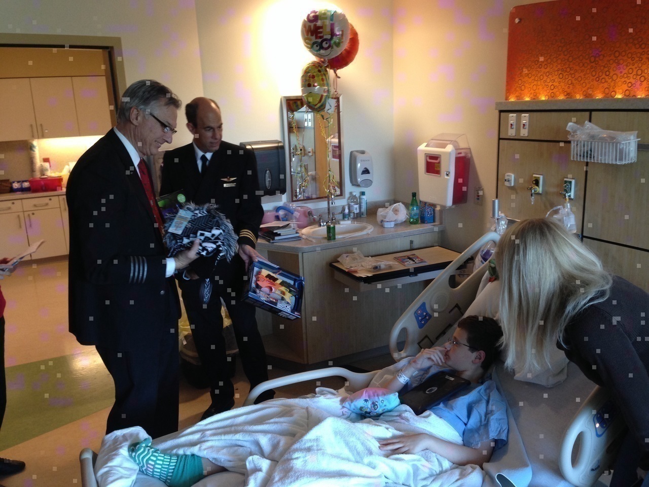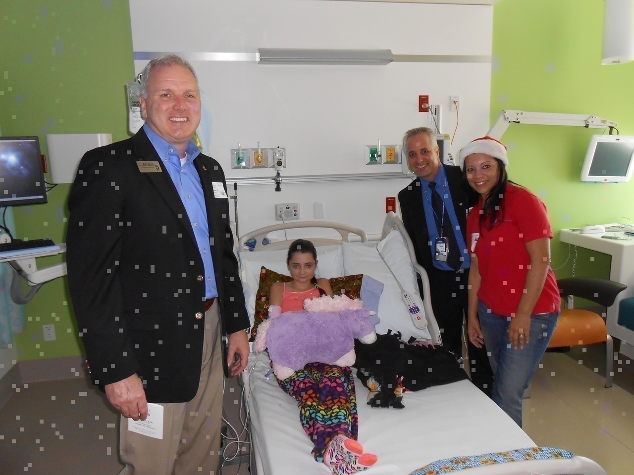 Description: - Teresa (hospital volunteer), Mike Gofman, kids/parent, Doug Israelite - The group: (top) Chris Perez, Don Myers, Jon Roth; (bottom) Marx Davis, Alex Cardenas, Doug Israelite, Mike Gofman - Traditional post-visit lunch at Sweet Auburn Curb Market