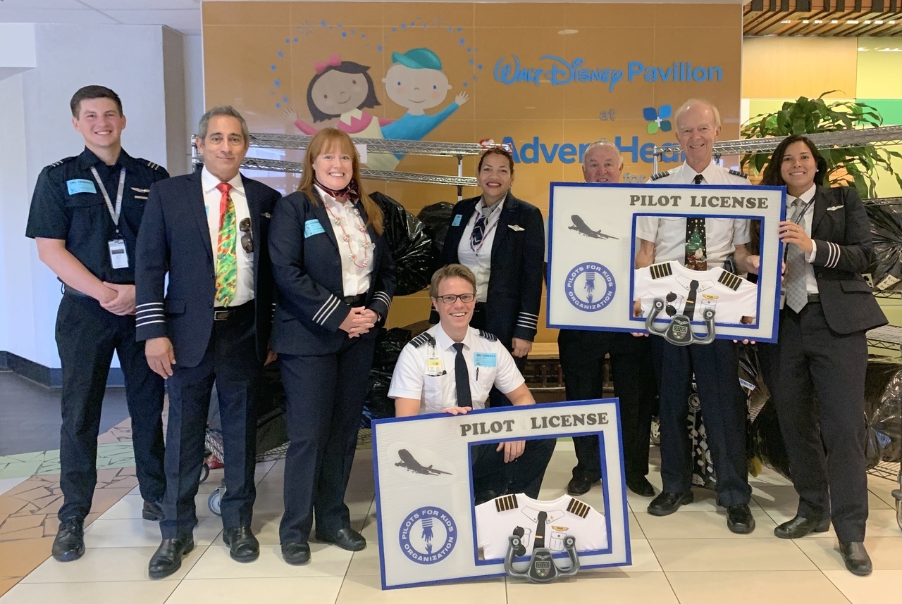 Description: On Wednesday August 2nd, the Houston Pilots for Kids group returned to the Memorial Children's Hospital in downtown Houston for a midyear visit. This was our second visit to this campus and it was a great success! PFK volunteers went to various floors for in-room visits and spread well wishes. We even had a chance to meet "Pilot", one of the hospitals service dogs. We provided a variety of gifts including pullback airplanes, pilot teddy bears, activity and sticker books, airplane cards and autographed children's books. The visit was a great success and we plan on visiting again later this year in December.